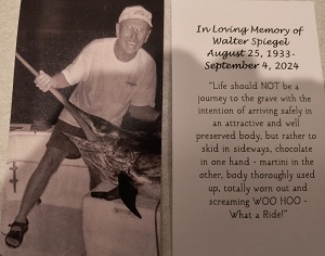8:00PM Kit called and we talked. She was telling me about getting several phone calls about Walter's Celebration of Life.