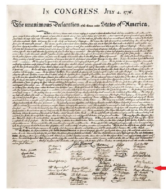 He searched for the right career for many years before he returned to Newport where he worked first as a merchant, next as a customs collector, and then as Clerk of the Rhode Island General Assembly. He started practicing law in 1770 at the age of 43 which seemed to be his calling and became active in the Rhode Island Sons of Liberty. When Statesman Samuel Ward died in 1776, Ellery replaced him in the Continental Congress. He was immediately appointed to the Marine committee and later participated in several others including the committee for foreign relations. Ellery also served as a judge on the Supreme Court of Rhode Island, He became a signer of the Articles of Confederation and one of the 56 signers of the Declaration of Independence in 1776. The size of his signature on the Declaration is second only to John Hancock's famous signature and an abolitionist by 1785.